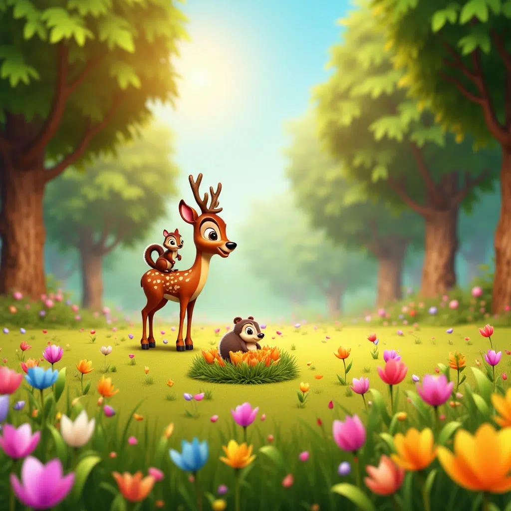 Veverica, ptičica i ježić su se okupili oko njega. „Tvoj cvet nije izgubljen, Bambi,“ rekla je ptičica. „On je pronašao novi dom među svojim prijateljima, baš kao i ti danas.“