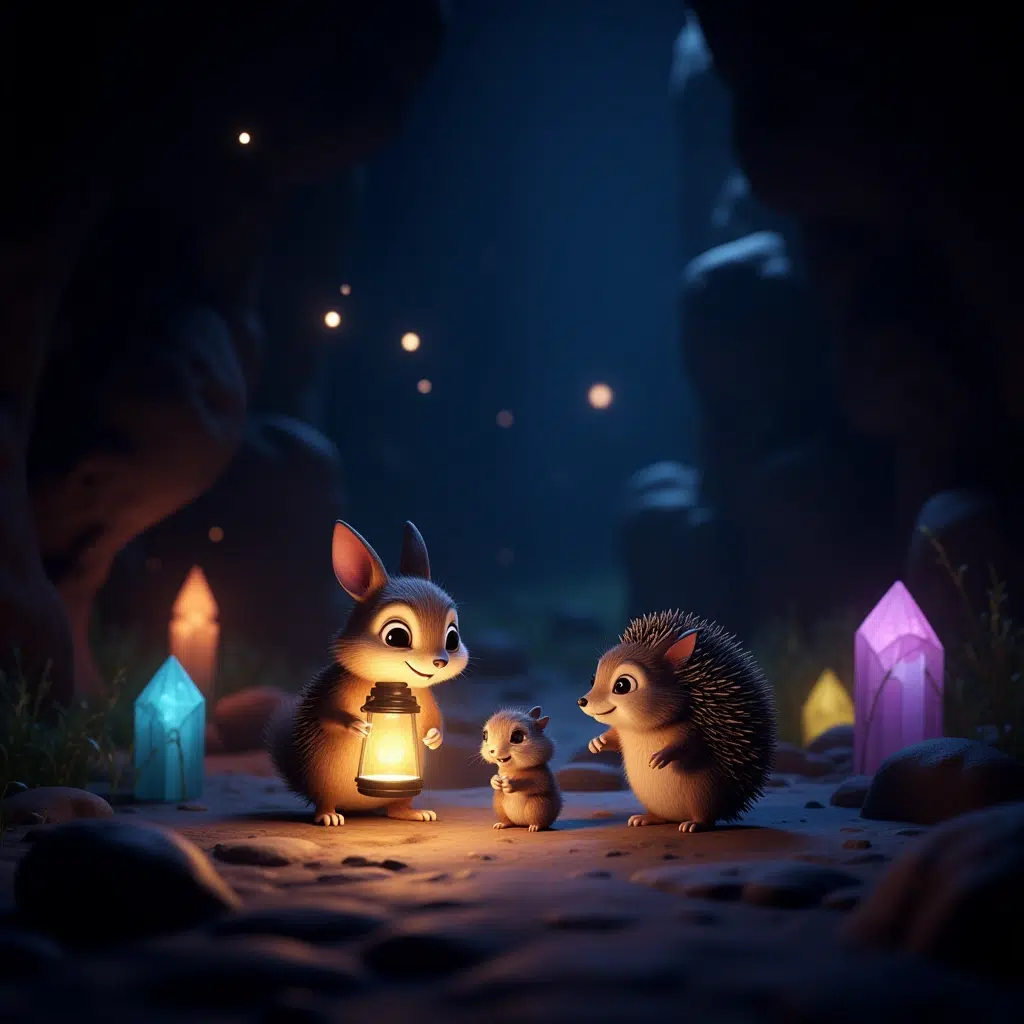 Dok su hodali dublje, Piko je primetio nešto neverovatno – na zidovima pećine su svetlucale male kristalne zvezde koje su obasjavale put. „Vau! Ovo je prelepo!“ uzviknuo je ježić, zaboravljajući svoj strah.