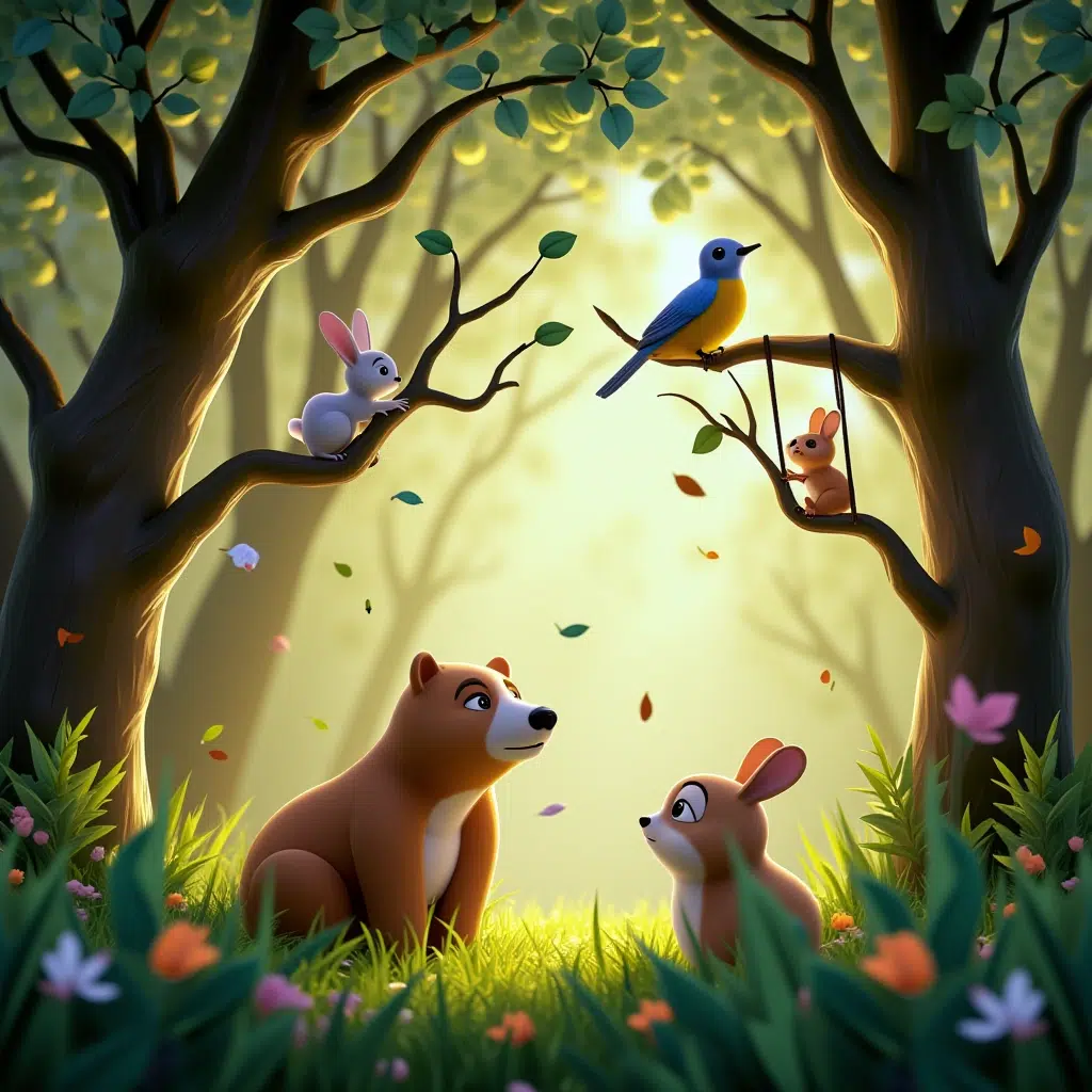 Vetar je nežno odgovorio: „Mali slavuju, ja nosim seme sa cveća, hladeći šumu i pomažem drveću da diše. I tvoja pesma i moj šapat važni su za prirodu. Kada bi svako slušao pažljivo, shvatili bismo da zajedno činimo šumu lepšom.“