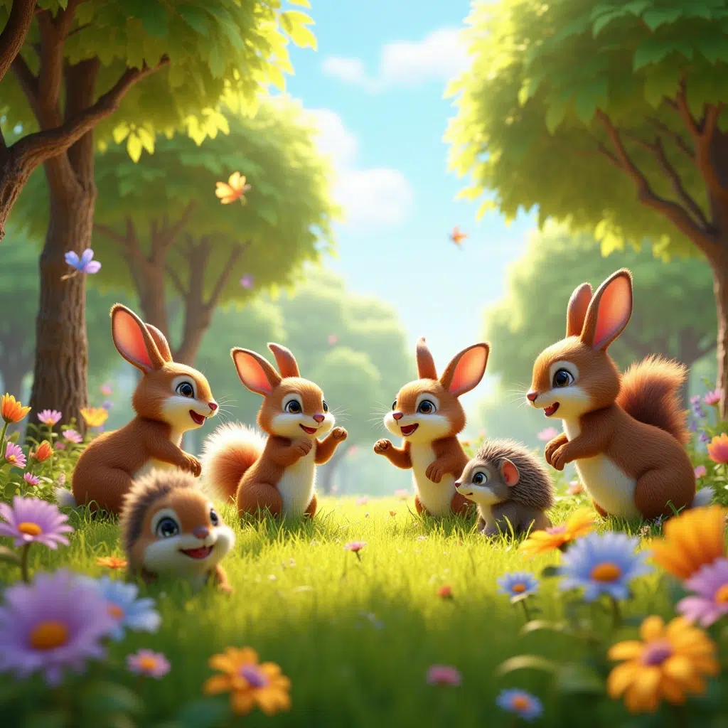 Od tog dana, šumska livada je postala najlepše i najmirnije mesto u šumi. Veverice su skakale po granama, zečići su vežbali svoje skokove, ježići su mirno spavali u hladu, a ptice su ispunile livadu najlepšim pesmama.