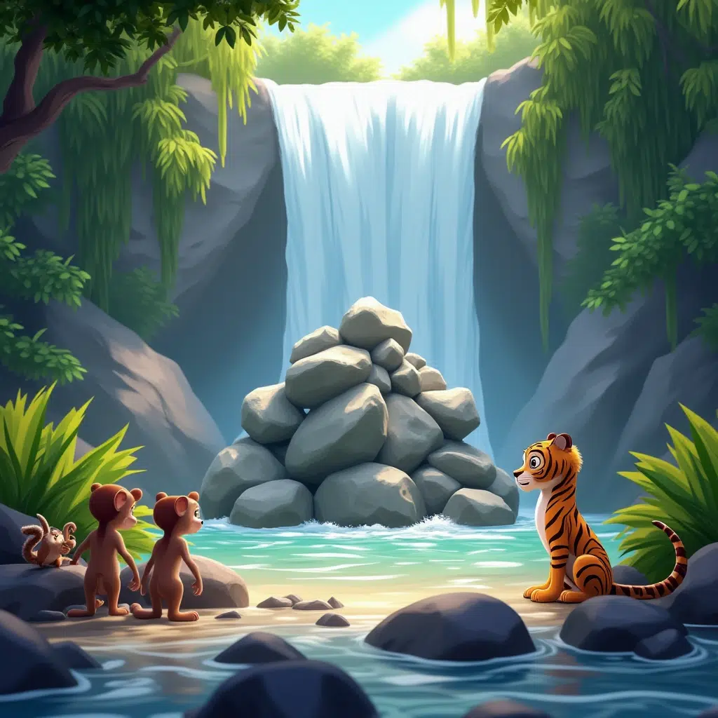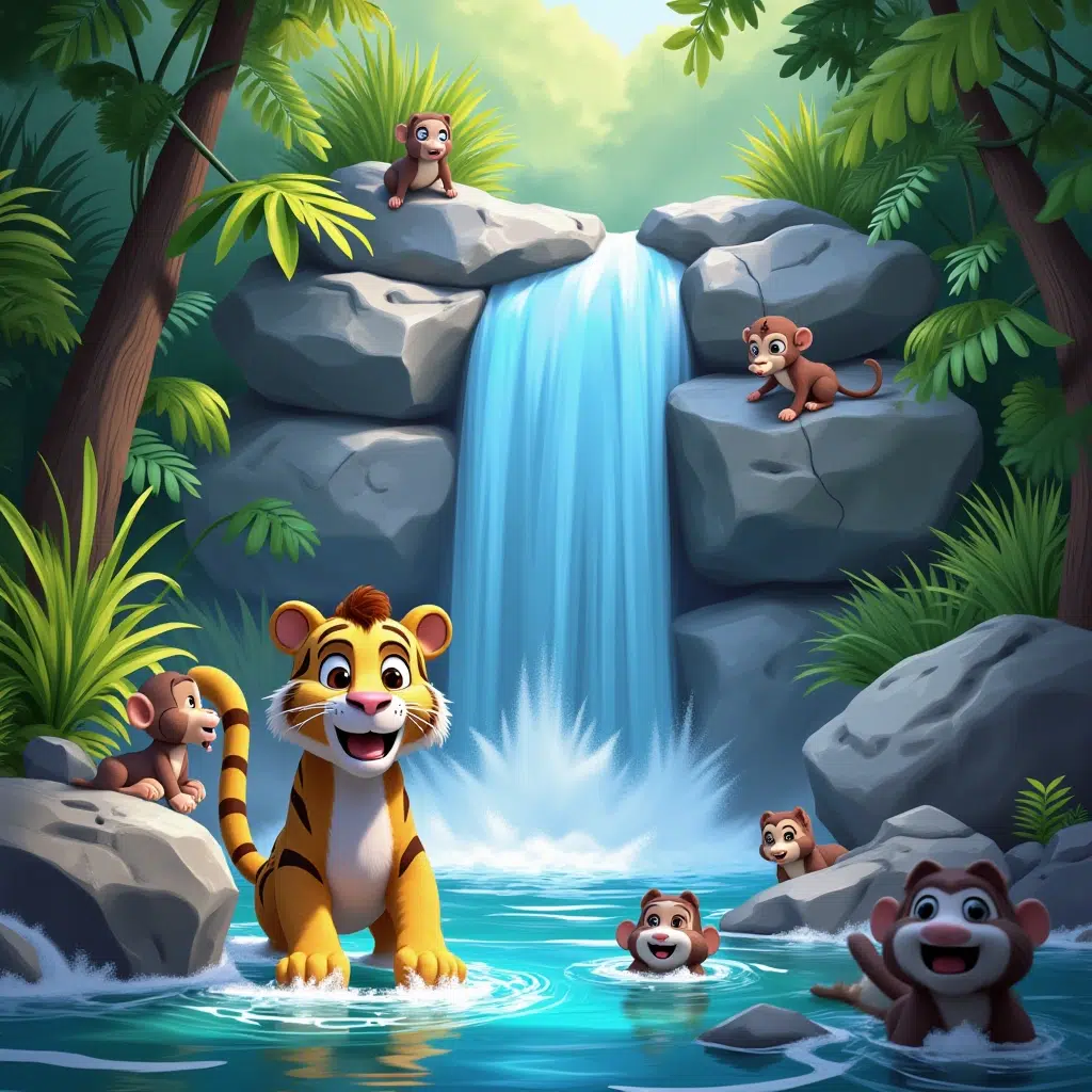 Duboko u zelenoj džungli, tigar po imenu Miki voleo je da istražuje. Bio je jak i brz, ali imao je jednu tajnu – bojao se buke velike vode. „Vodopadi su preglasni i previše snažni,“ govorio bi, izbegavajući taj deo šume.