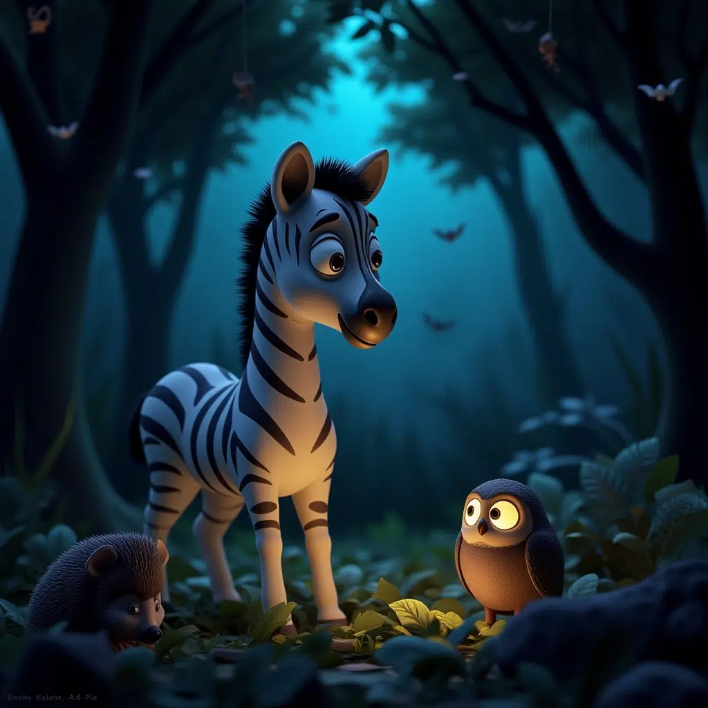 Zebra Zara bila je najradoznalija zebra u svom krdu. Volela je da istražuje prostrane savane, ali oduvek joj je pažnju privlačila Tamna Šuma na kraju ravnice. Starije zebre su je upozoravale: „Ne idi tamo, Zara! Tamna Šuma je opasna. Tamo žive neobične i strašne životinje.“